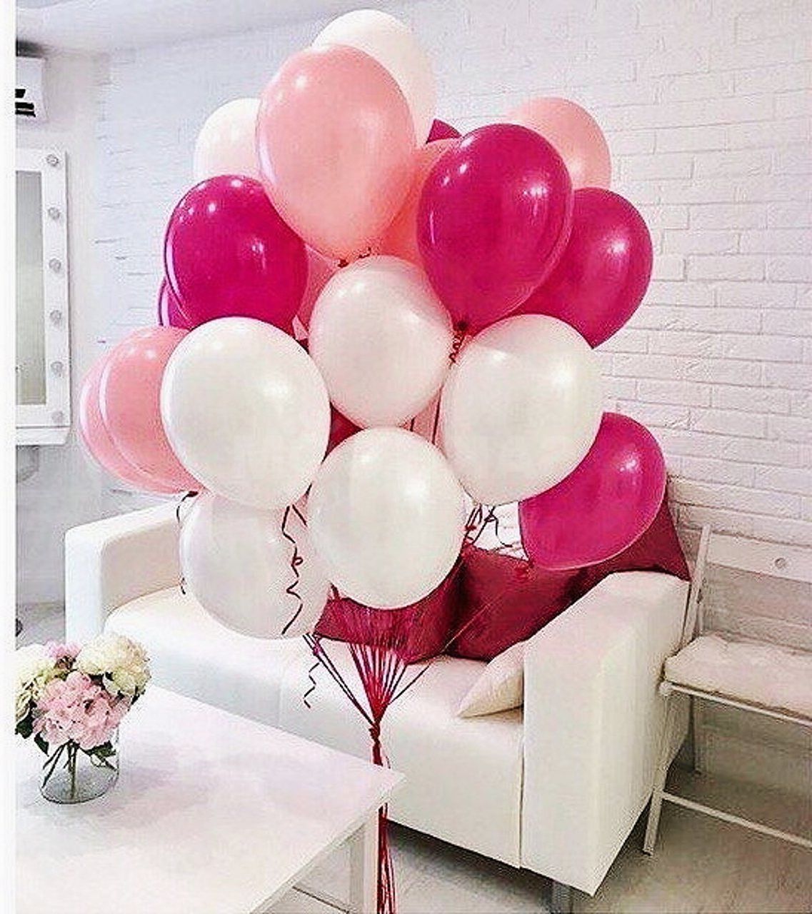 Фонтан из одиннадцати шаров выстроен вокруг трех фольгированных сердец розового золота. Хром и латекс разной плотности добавляют глубину всей композиции.