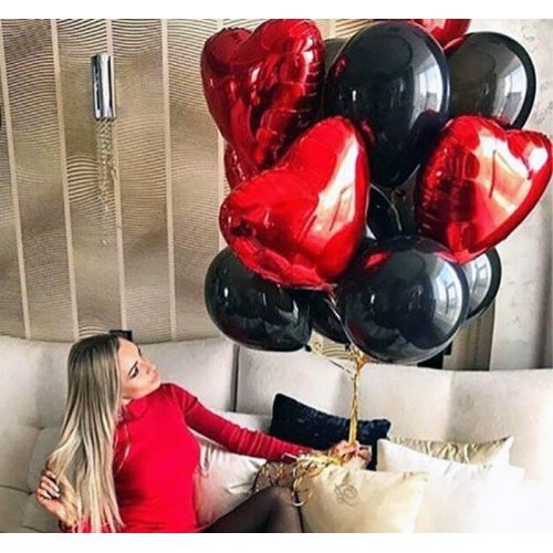 Фонтан из красных сердец с чёрными шарами