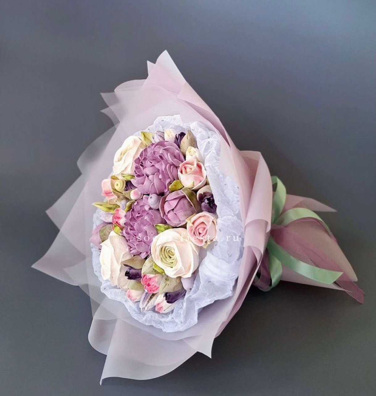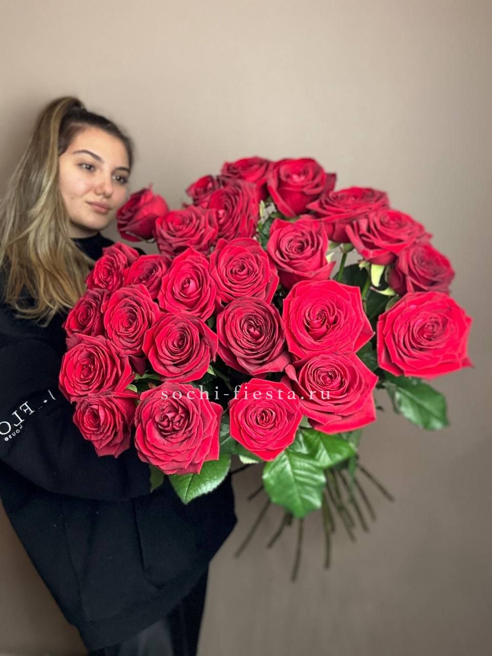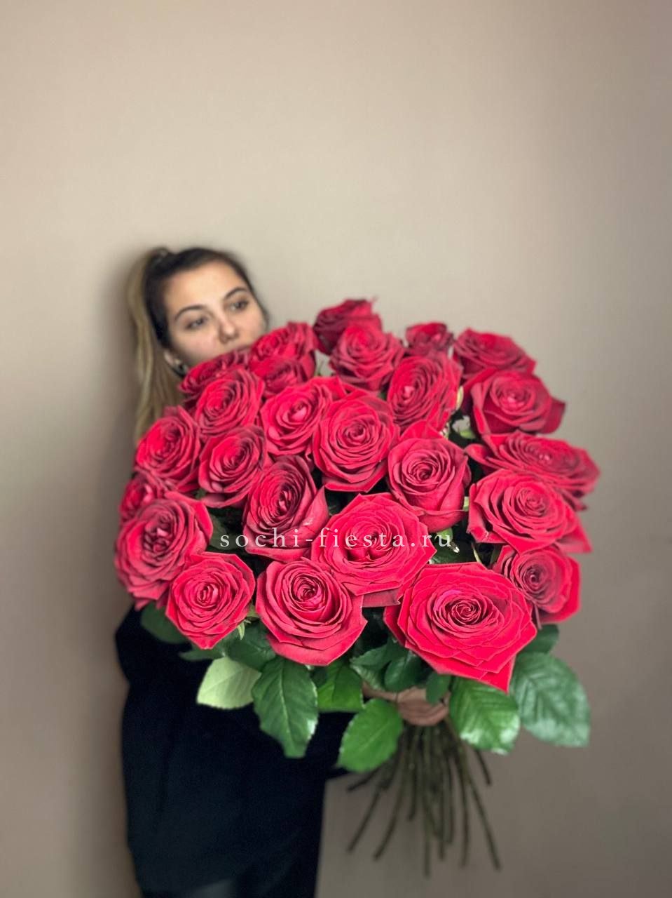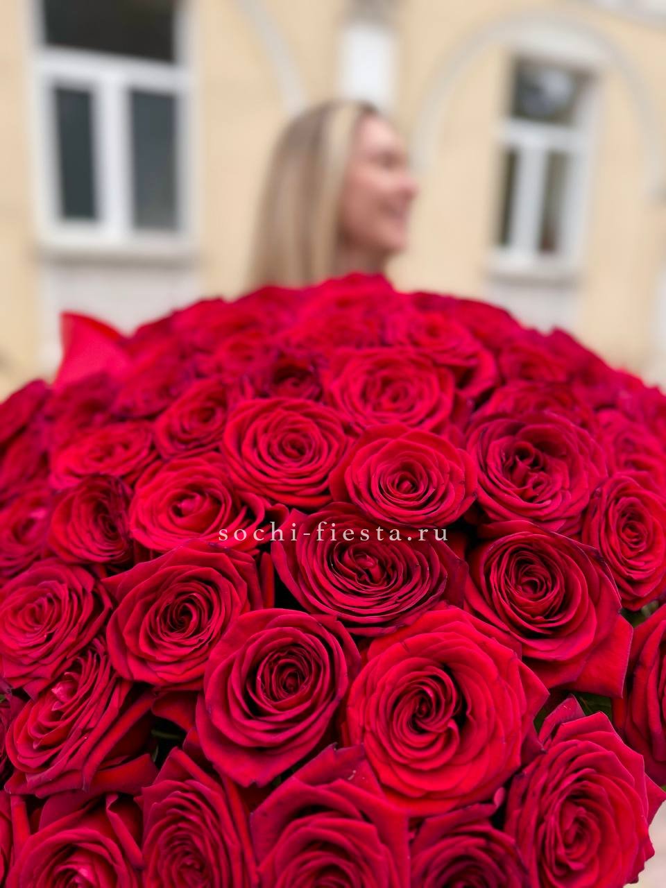 Пятьдесят один белоснежный бутон создаёт объёмное облако с мягкими переходами света и тени. Голландские розы держат форму и заполняют пространство плотной текстурой лепестков.