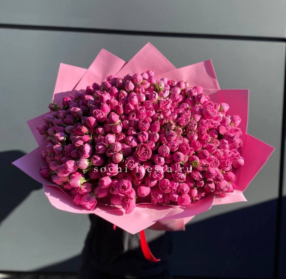 кремовые кустовые розы, лагурус, лента, дизайнерская пленка комбинированная.