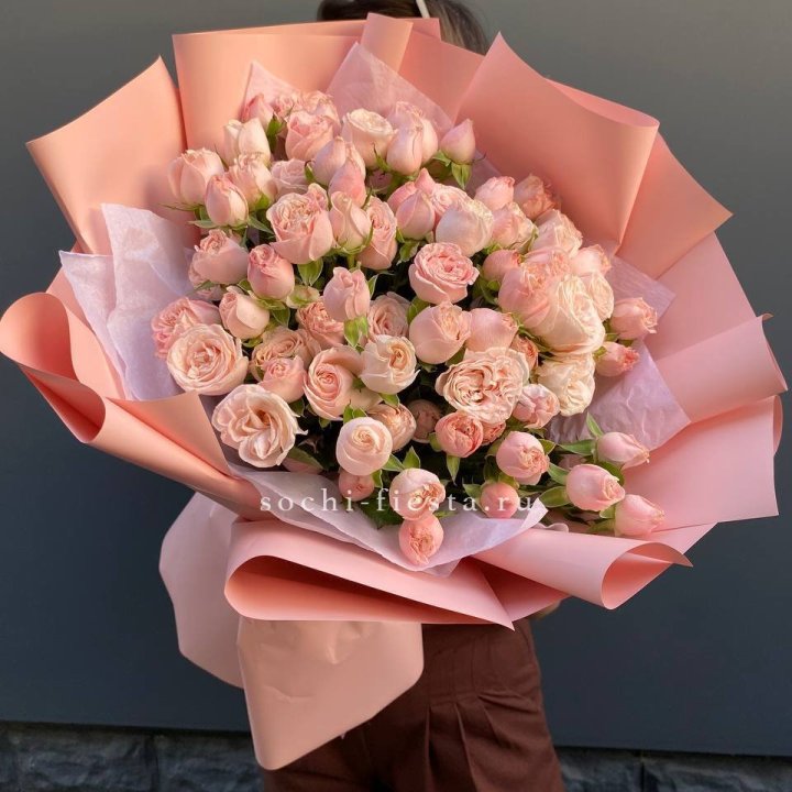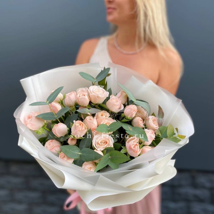Кустовые пионовидные розы сорта «Бомбастик» отличаются крупным бутонов, нежной текстурой и бледным воздушным оттенком.