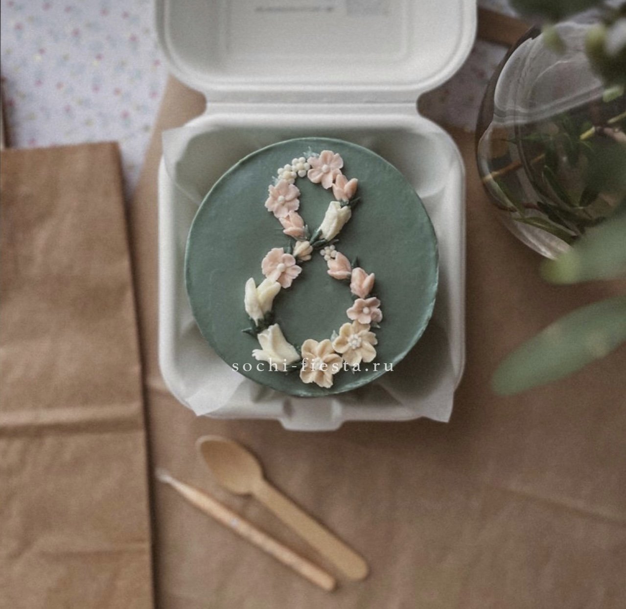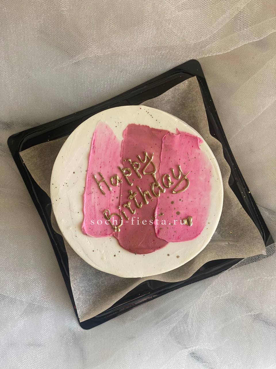 Праздничный бенто-торт ручной работы с персональным поздравлением. Декор из крема держит форму и добавляет объём композиции. Выбор между клубничной свежестью и шоколадной глубиной.